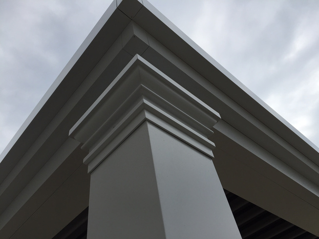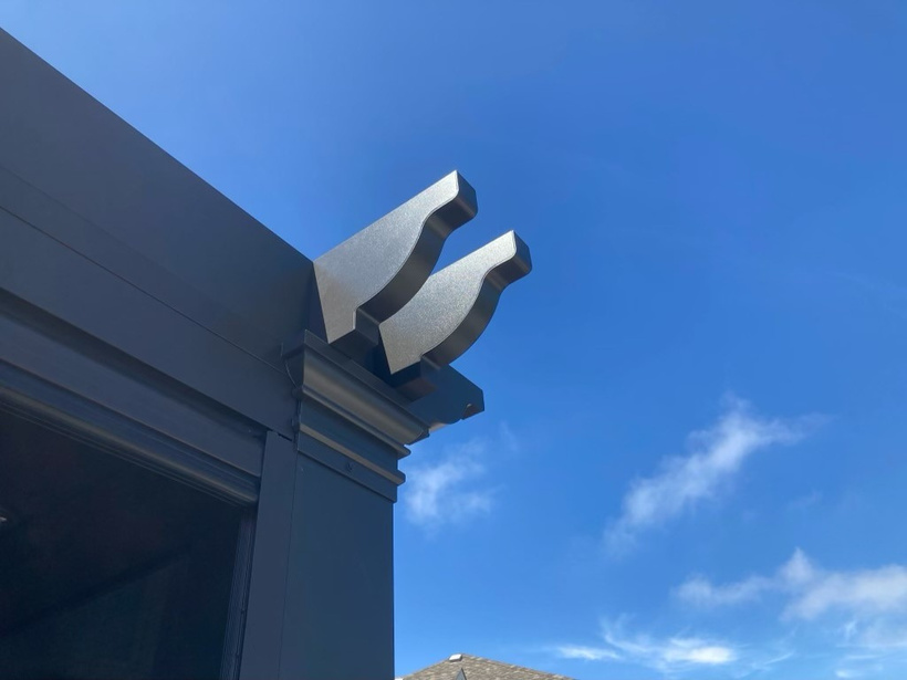 Black StruXure featuring Tan Louvers & Phantom Motorized Screens