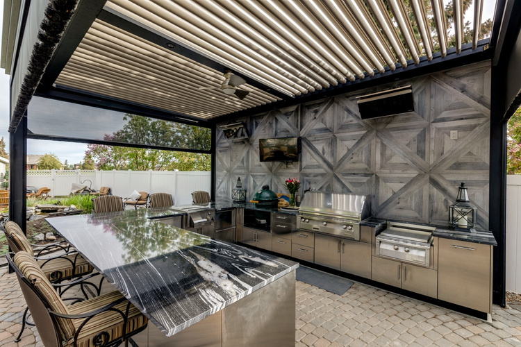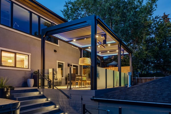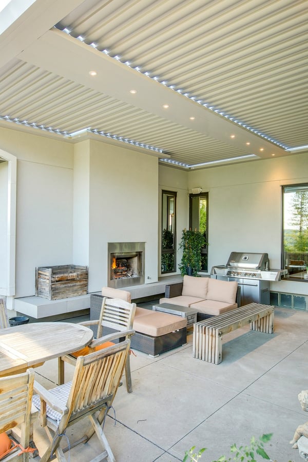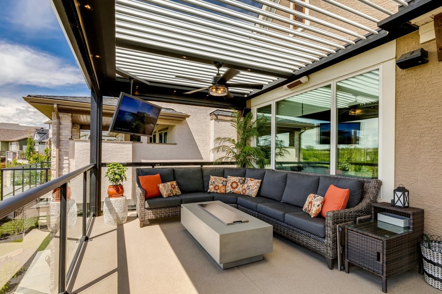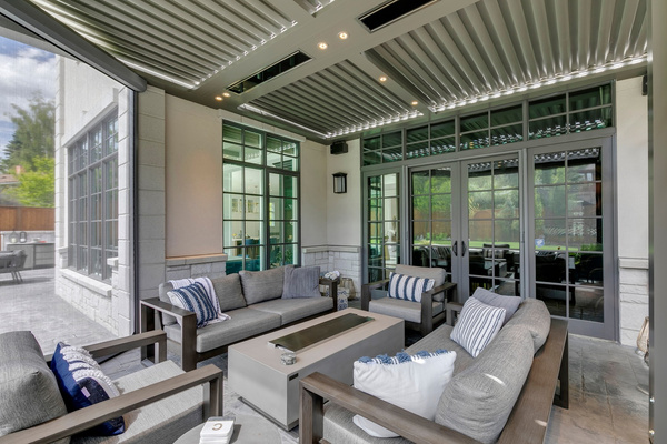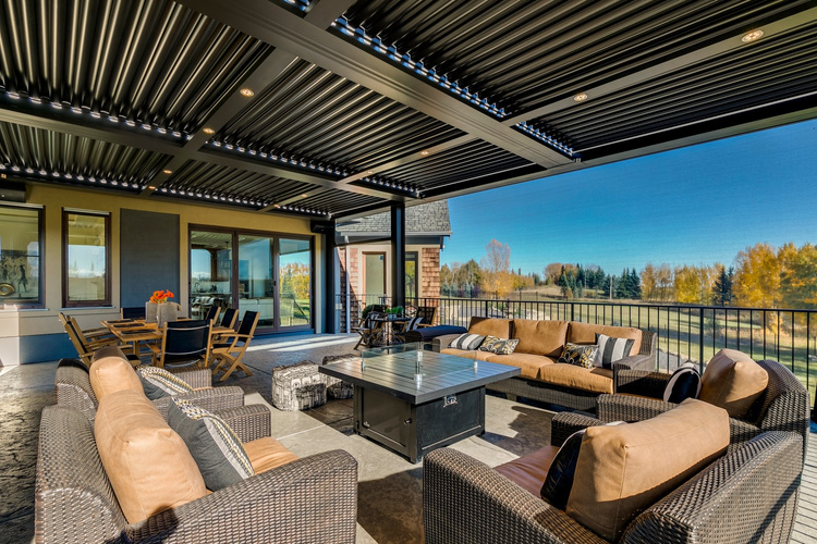 Black StruXure with Adobe Louvers featuring Phantom Screens & Bromic Heating