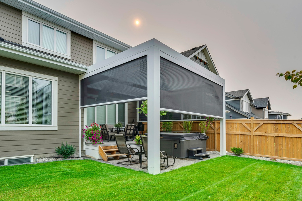 Black StruXure with White Louvers & Phantom Motorized Screens