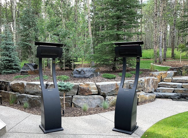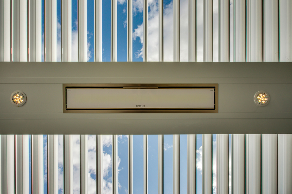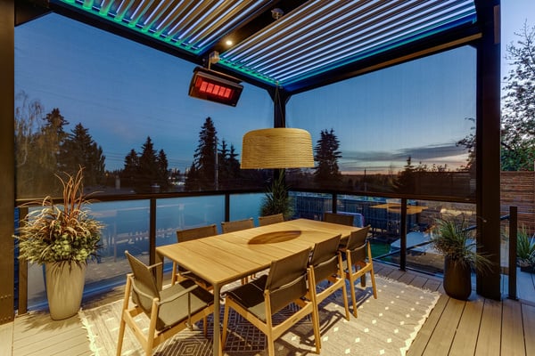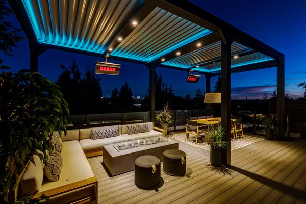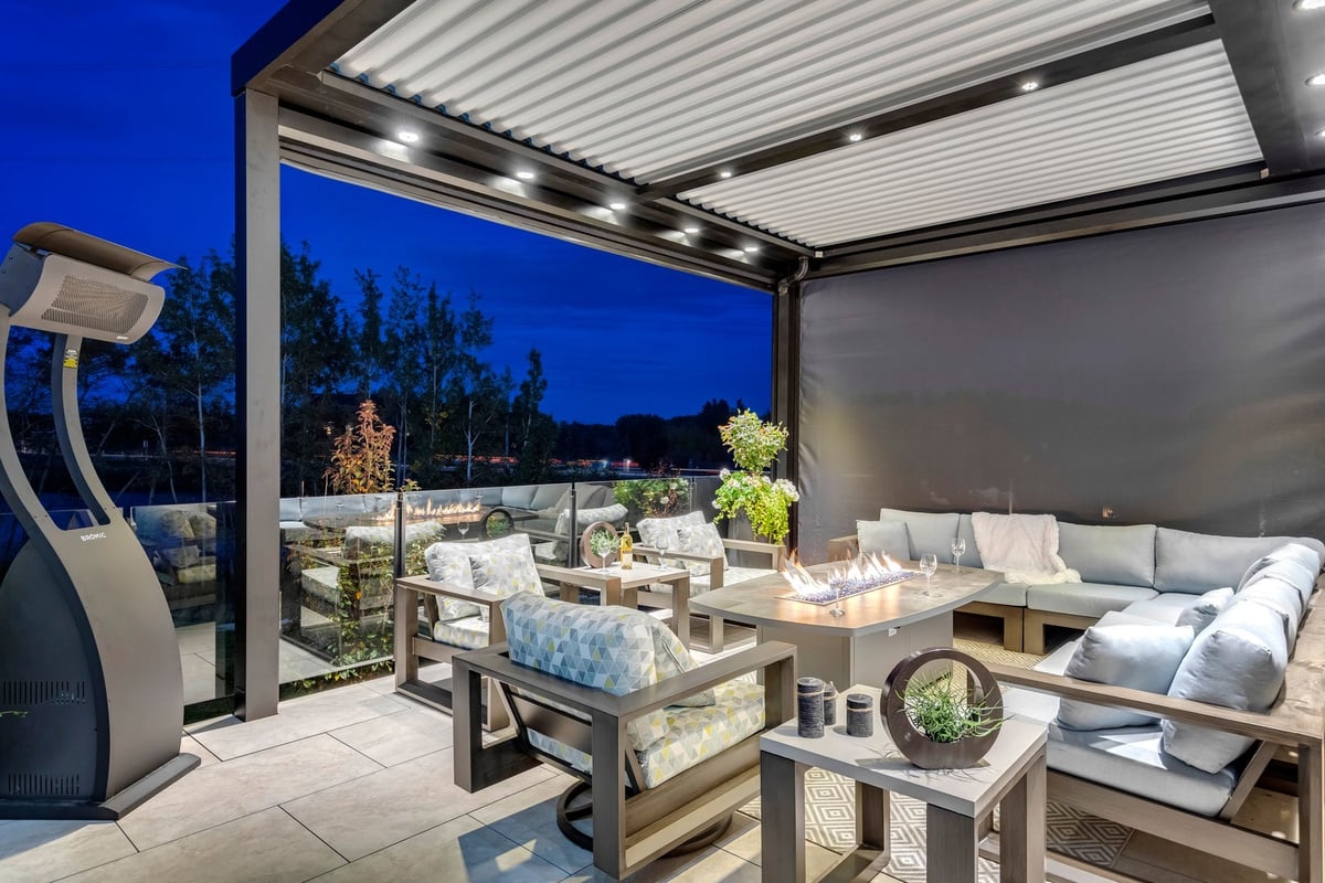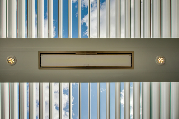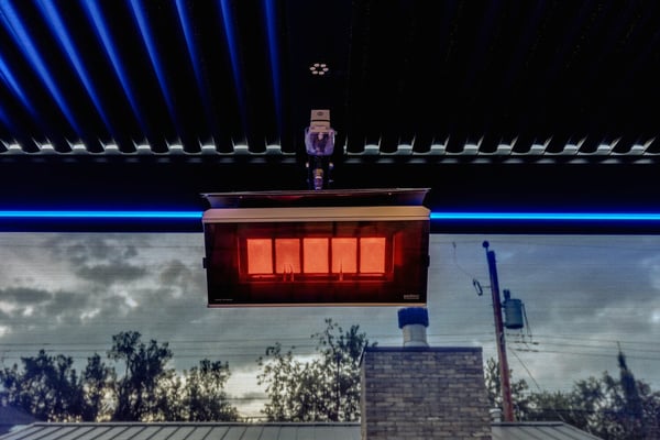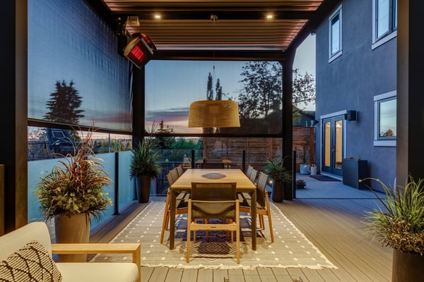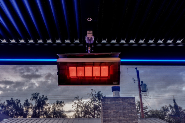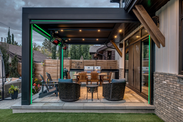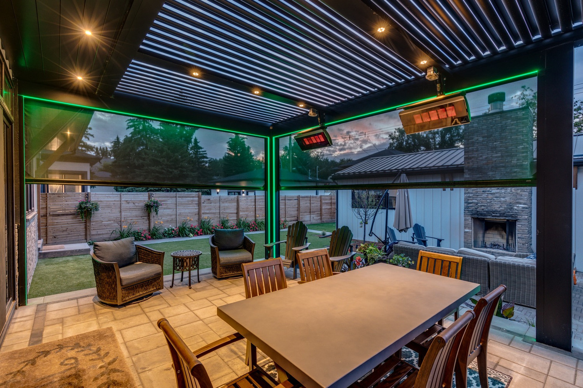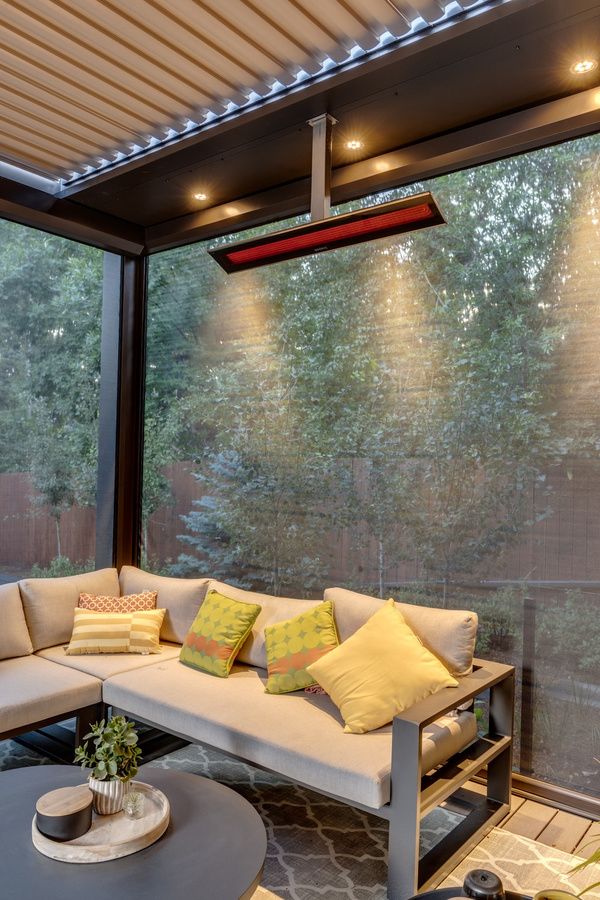 Black StruXure system with integrated Bromic Heating & Phantom Motorized Screens