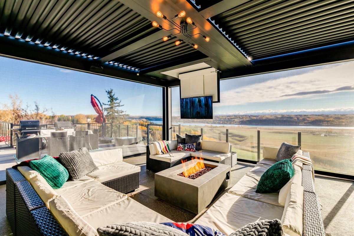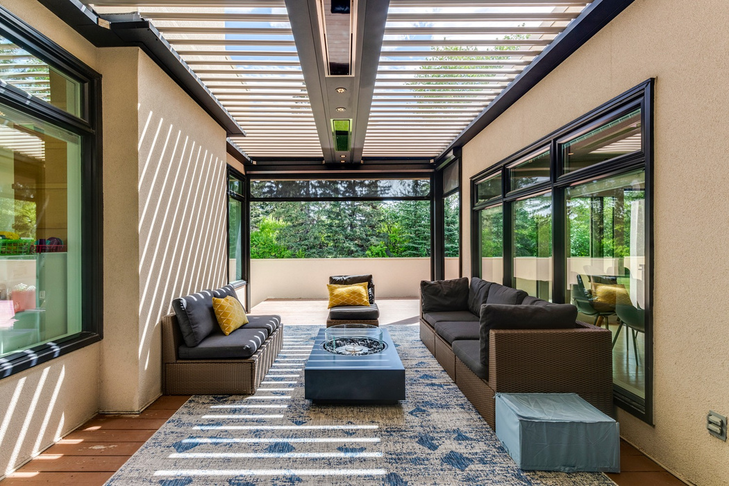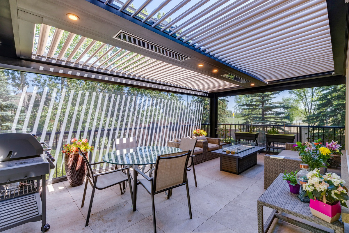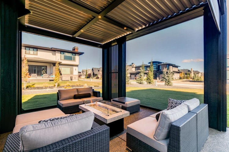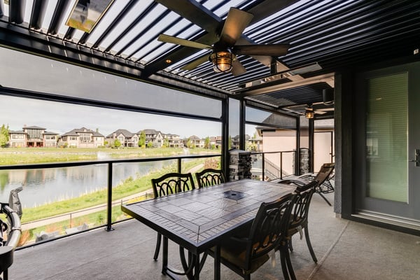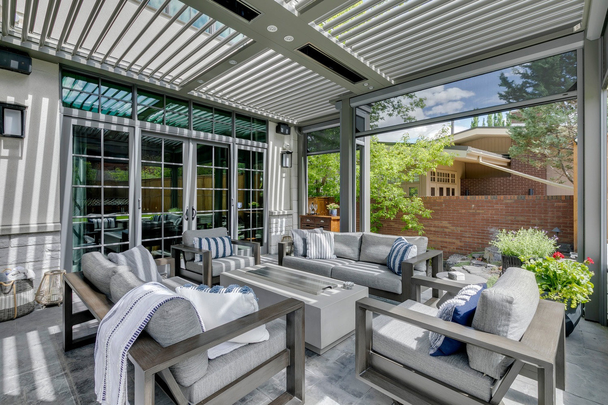 Black StruXure with Tan Louvers, Bromic Heating & Phantom Screens