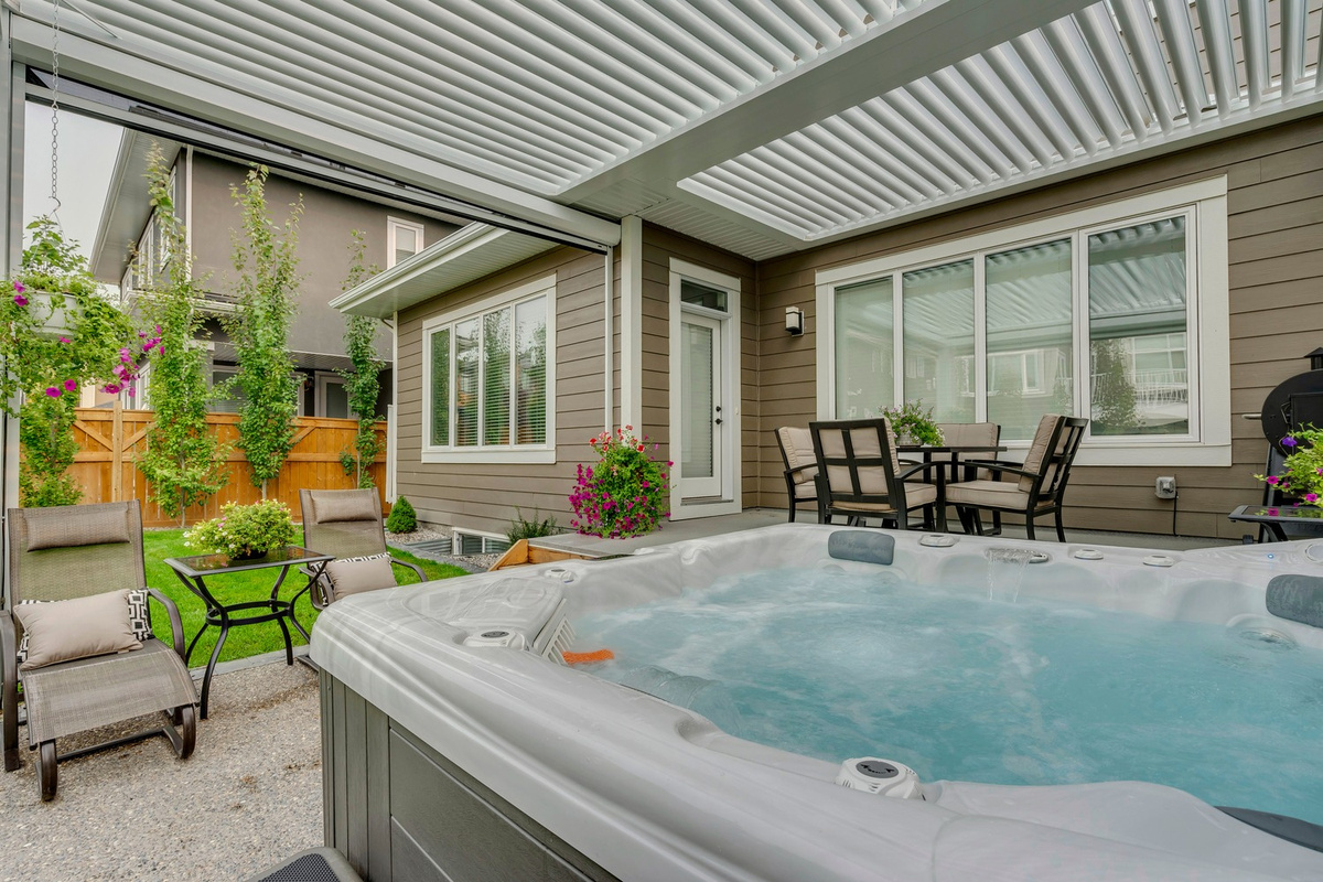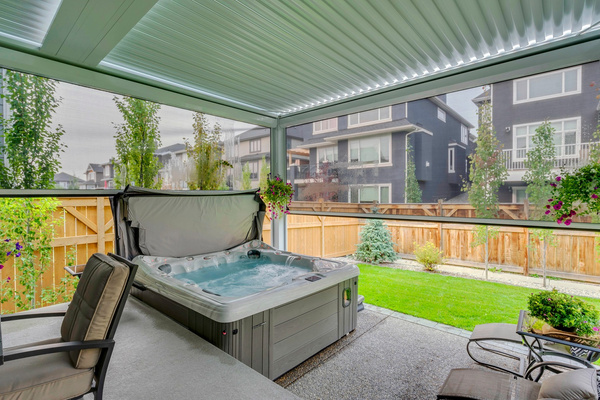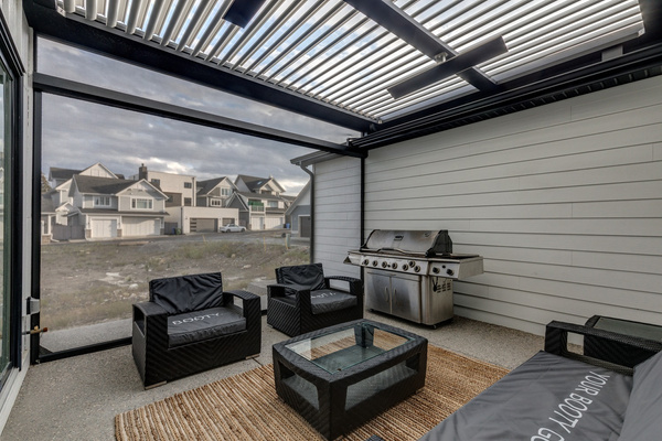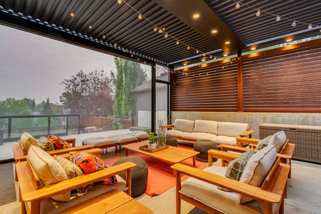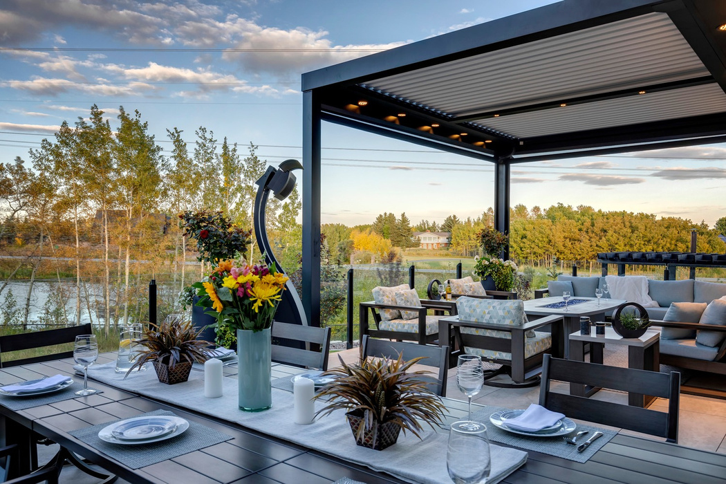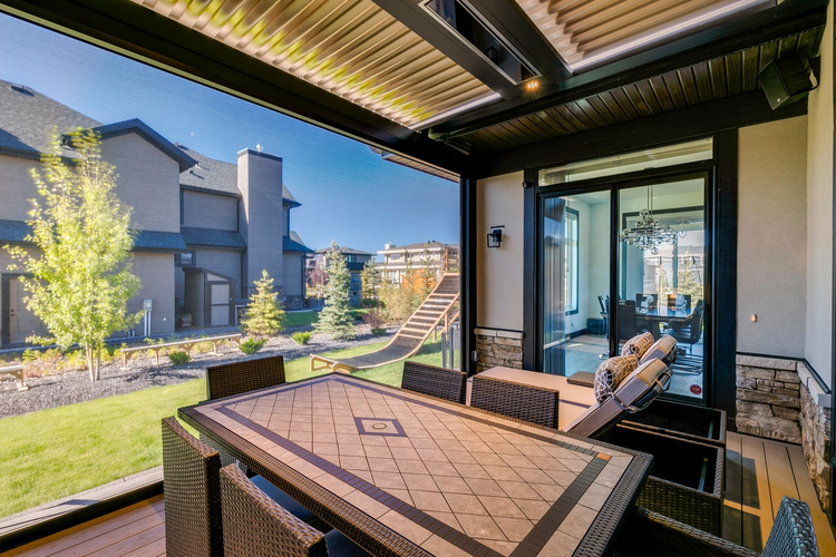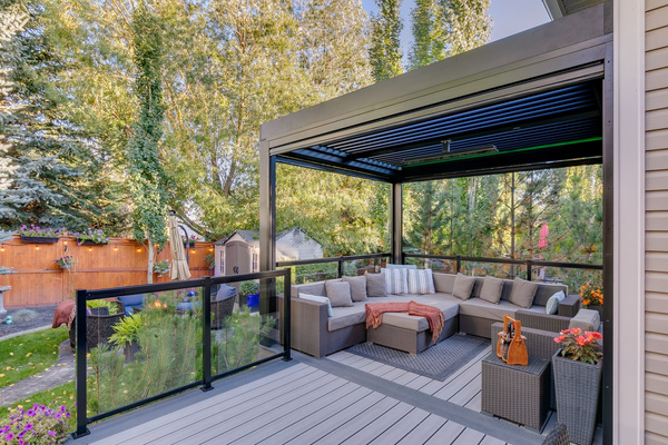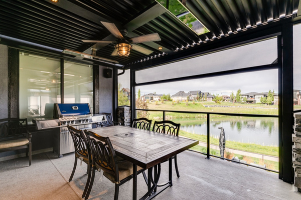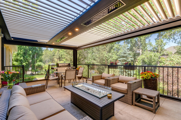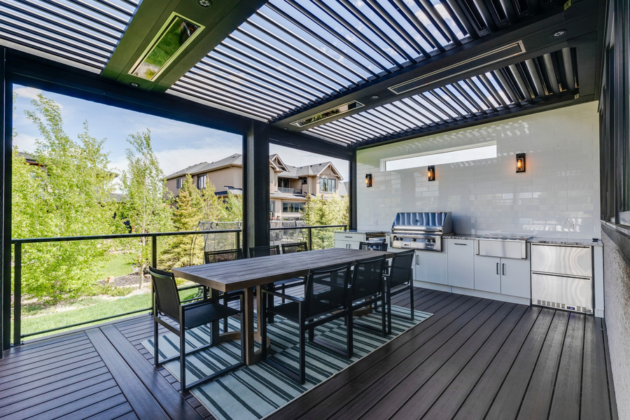 Black StruXure with Tan Louvers, Bromic Heating & Phantom Screens