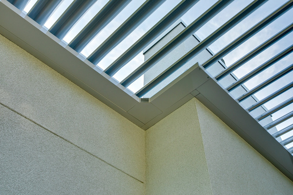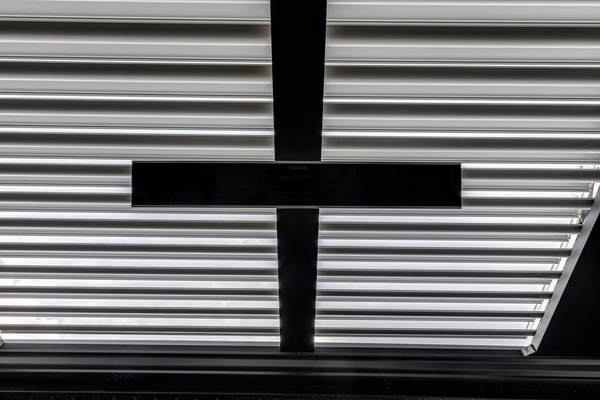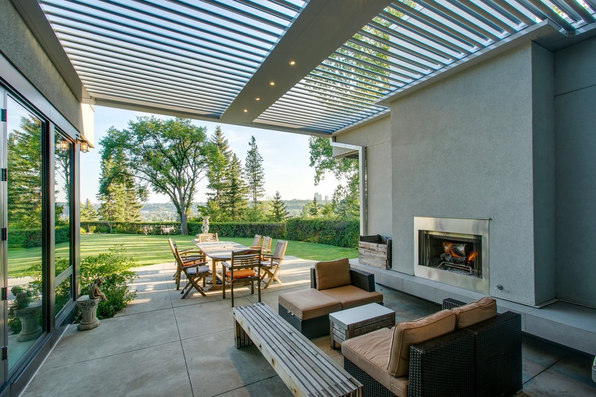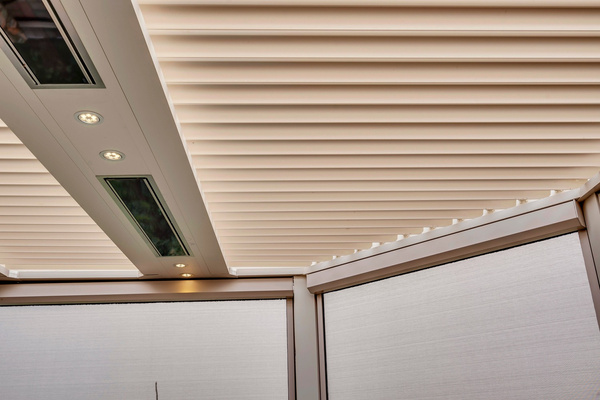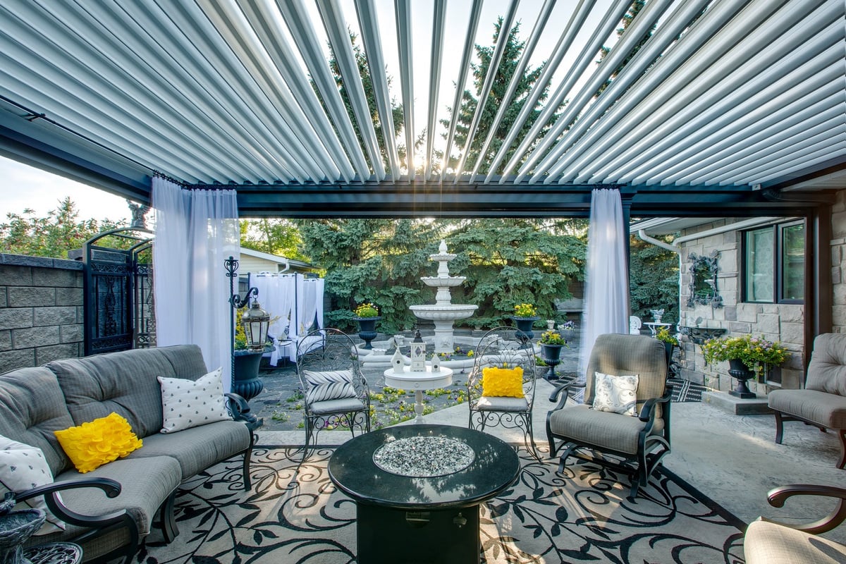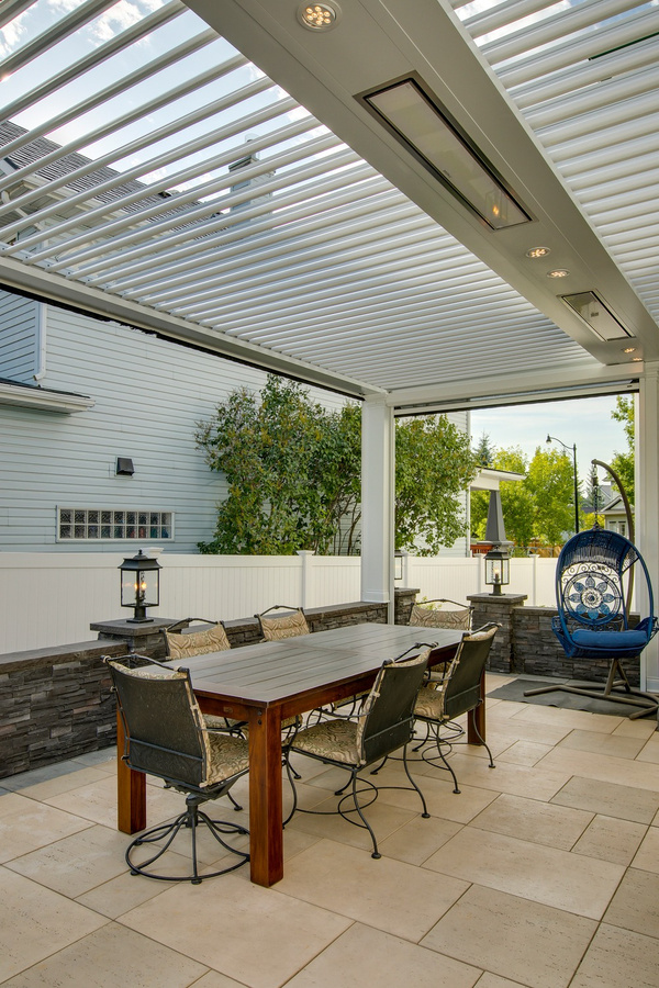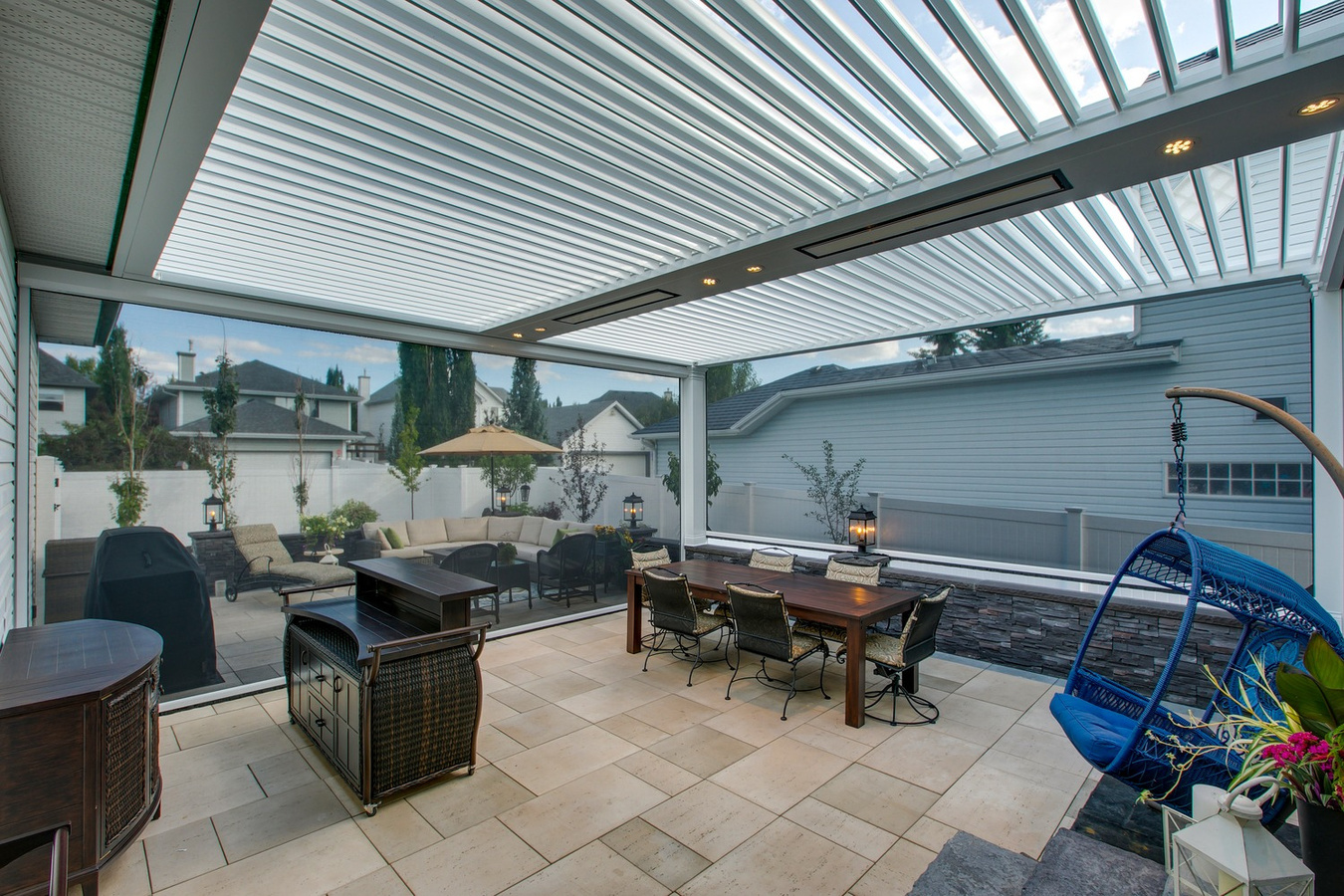 Tex Black StruXure with White Louvers featuring Phantom Motorized Screens