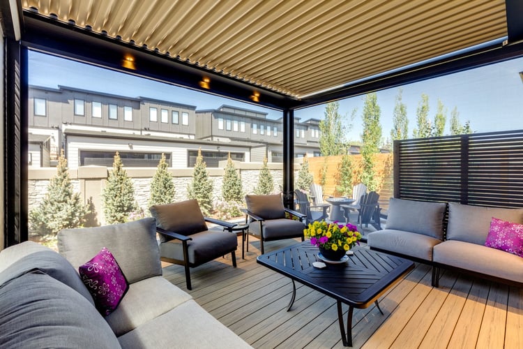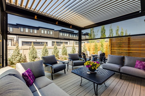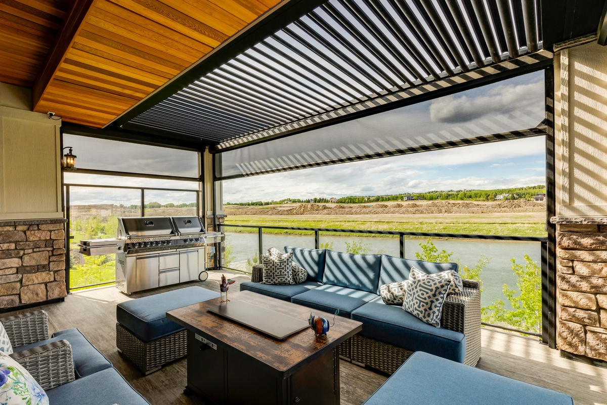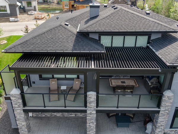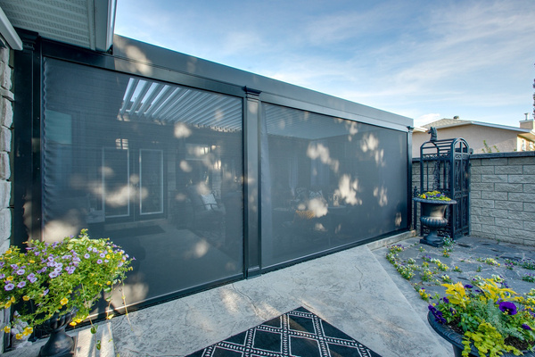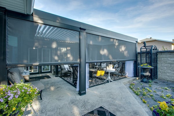 Black StruXure with Adobe Louvers & Phantom Motorized Screens