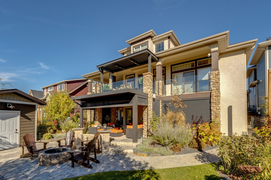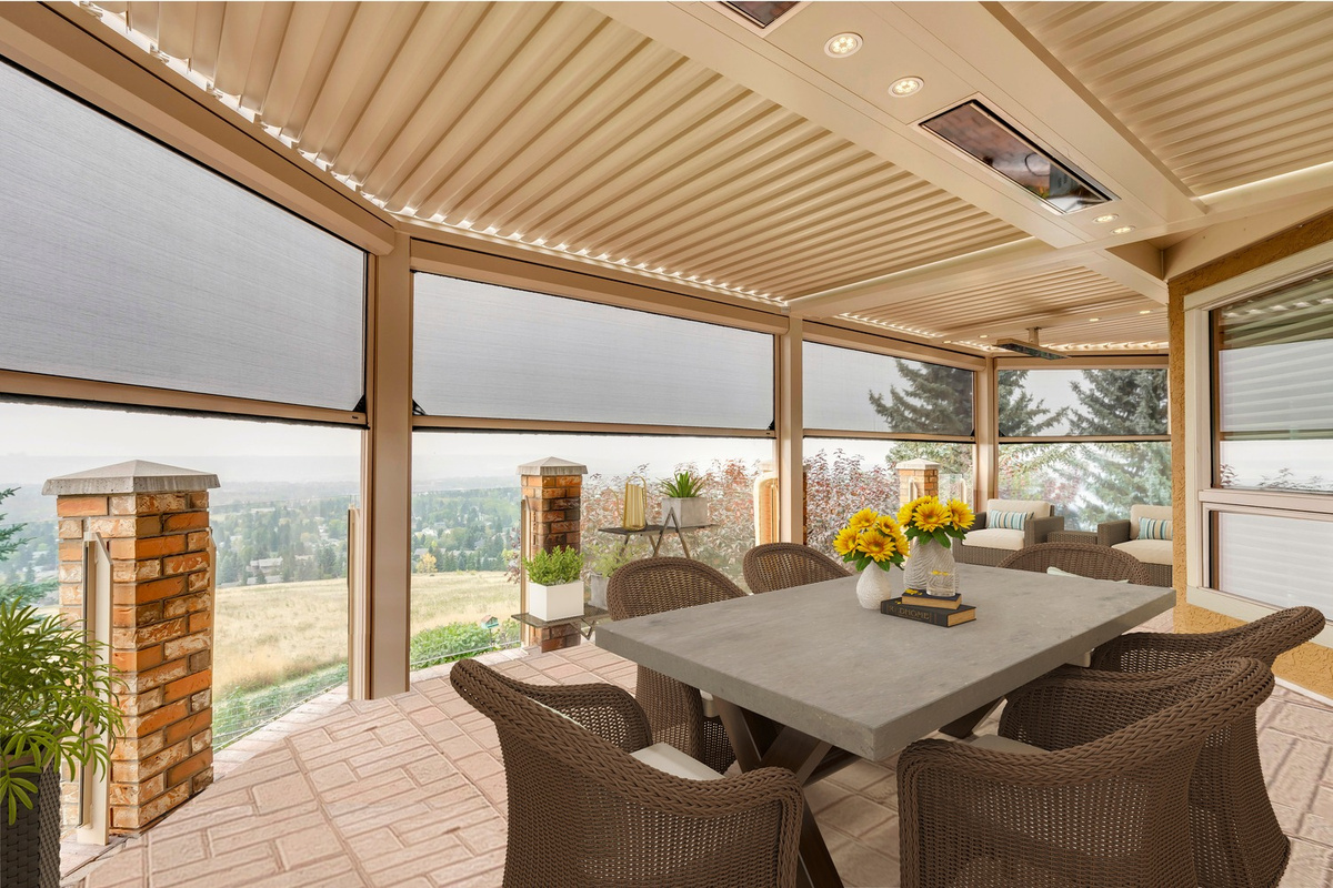 Bronze StruXure with Adobe Louvers & Rideau Brown Phantom Motorized Screens