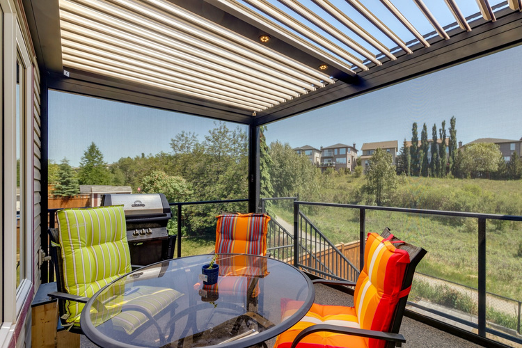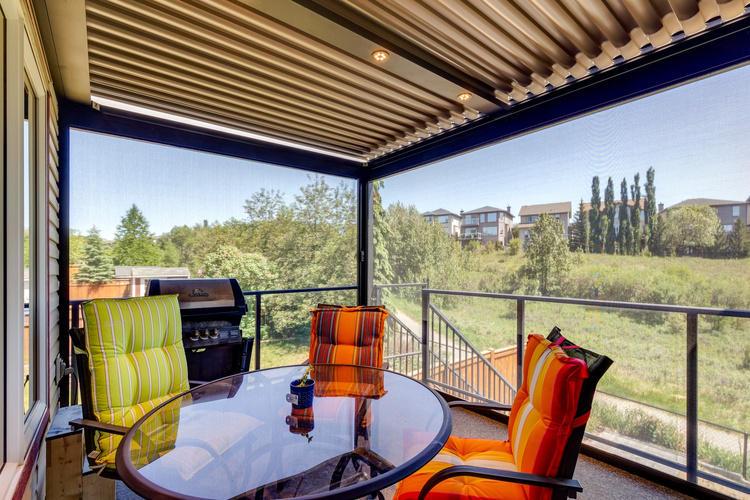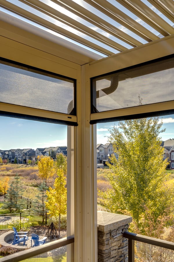 Bronze StruXure with Tan Louvers & Rideau Brown Phantom Motorized Screen